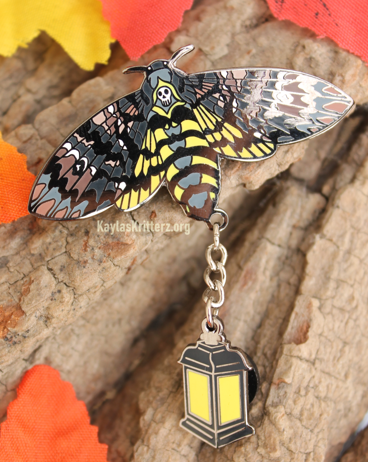 Each pin comes with the dangly lantern. Including both the moth and his lantern, this pin is an impressive 2.5"
