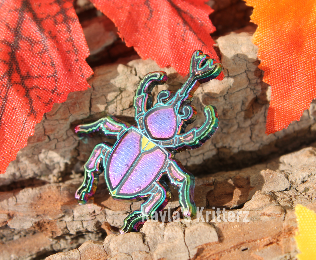 These adorable beetles are very unique, no two are exactly the same! With the special treatment the metal goes through to create these pins, the color varies a bit from one to the other.